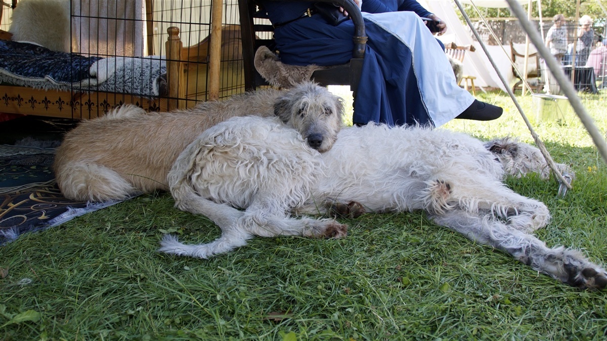 Derudover tager vi på éndagsmarkeder – bl.a. ved Tranekær på Fyn og ved Middelalderdage på Blicheregnen. Uanset hvor vi kommer, er hundene populære, og mange besøgende fortæller, at de især kommer for at se de irske ulvehunde.