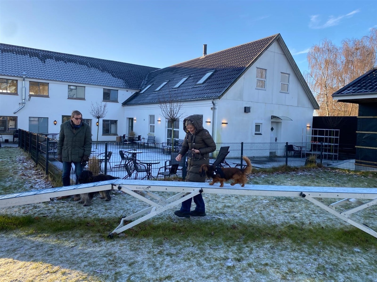 Inden aftenens store middag skulle der brændes lidt overskydende energi af, så både hunde og ejere var klar til en lang aften. Kroen råder over sin egen agilitybane lige uden for døren, og her stod den engagerede DKK-instruktør Erik Schrøder klar til at lede et underholdende minikursus i agility for de mange fremmødte hunde og deres nysgerrige ejere. Flere havde denne dag debut på agilitybanen, og fik brugbare værktøjer med til en god start i sporten.